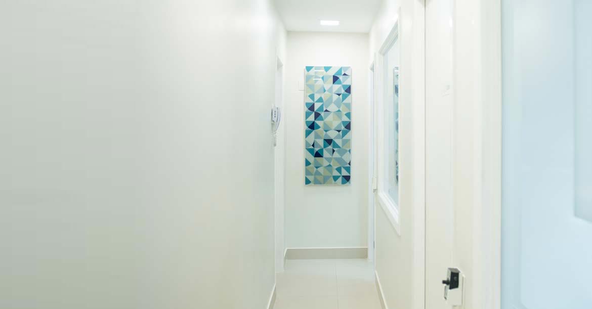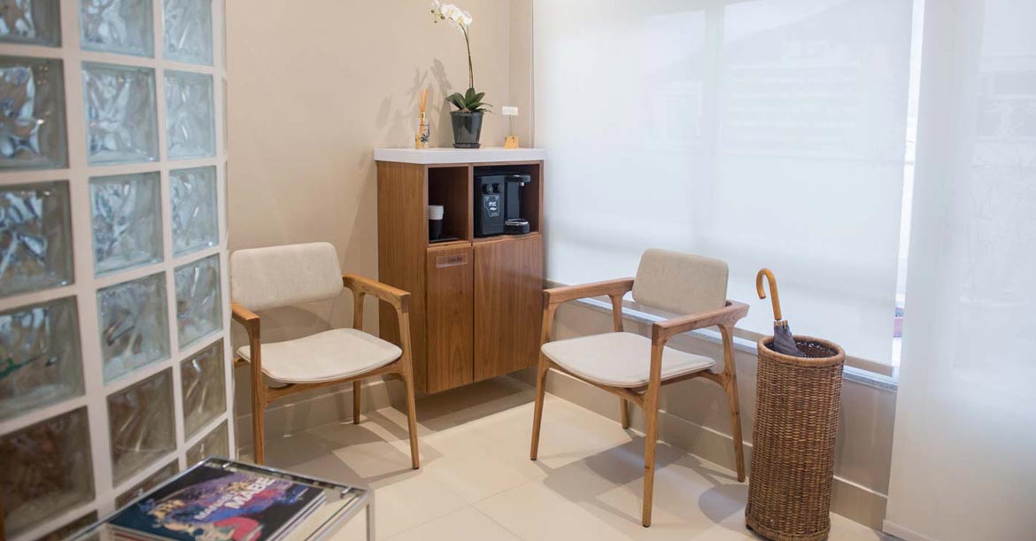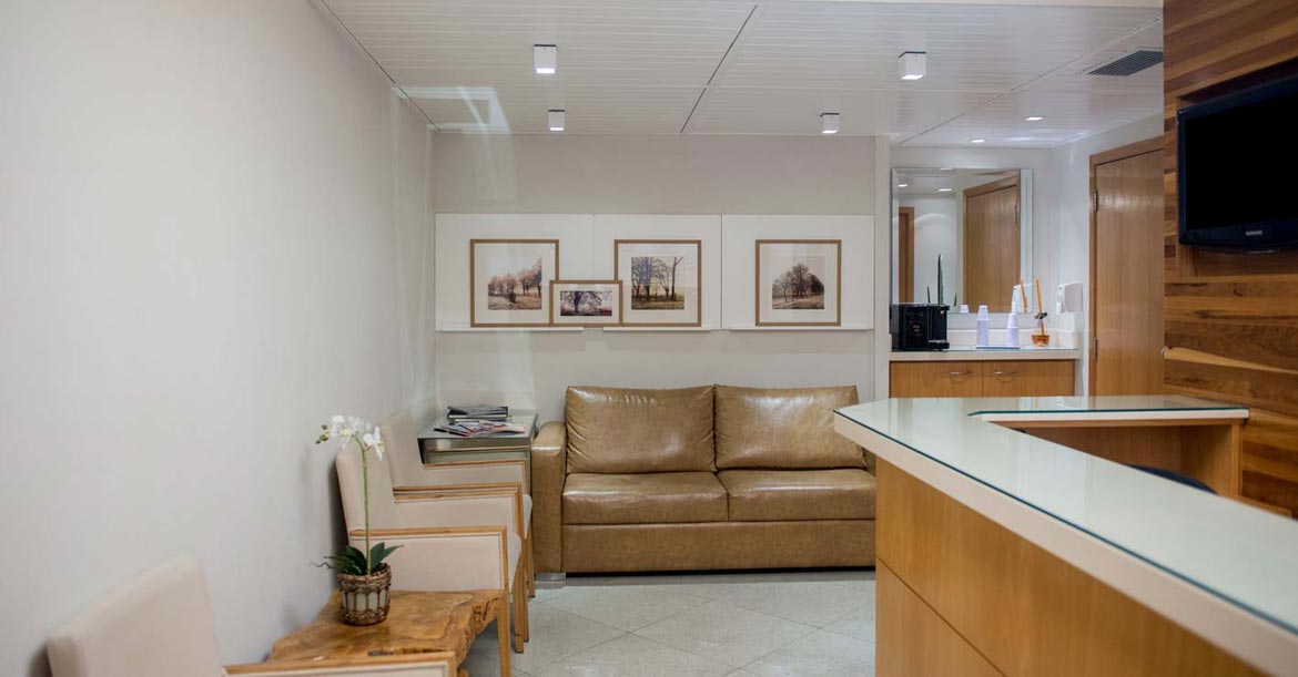 Clínica composta de confortável sala de espera, com 3 consultórios de atendimento padronizados e sala de Imagem, para obtenção de radiografias panorâmica e tomografia 3D, além de fotografias para análise estética do paciente.